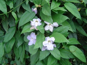 เป็นไม้เถาเลื้อย เนื้อแข็ง ใบลักษณะเป็นใบเดี่ยว ออกตรงข้าม รูปขอบขนานหรือรูปไข่ ปลายใบเรียวแหลมคล้ายใบย่านาง ดอก มีสีม่วงอมฟ้า ออกเป็นช่อห้อยลงตามซอกใบ ผล เป็นฝัก กลม ปลายเป็นจะงอยเมื่อออกผลจะแตกเป็น 2 แฉก ปัจจุบันนี้นิยมปลูกไว้ในบ้าน ให้ขึ้นตามรั้วหรือทำเป็นไม้กระถาง